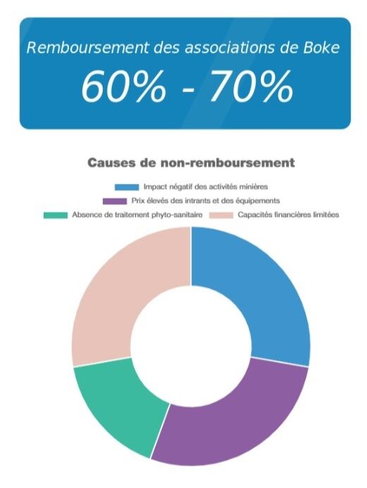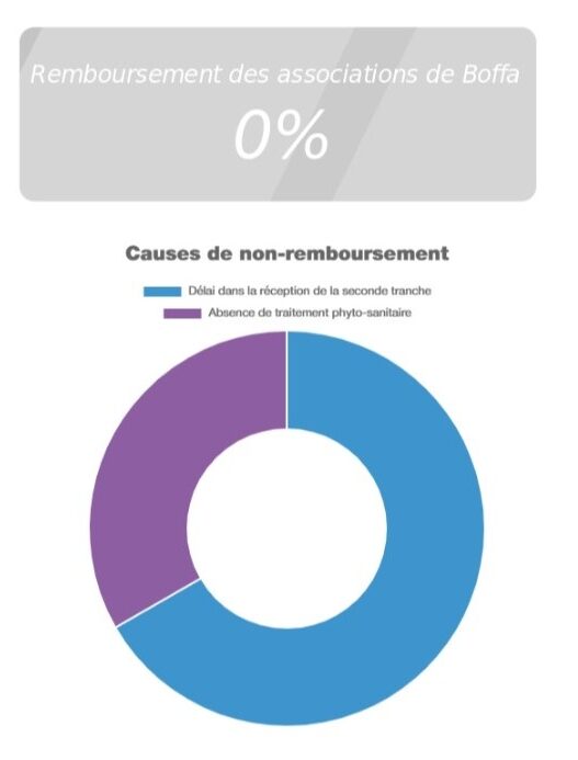 Les associations de Boké régions ont procédé au remboursement partiel de leur subvention. Au moment de l’enquête, les associations de Boffa ont indiqué n’avoir procédé à aucun remboursement. Le taux re remboursement au moment de l’enquête figure dans les tableaux suivants.