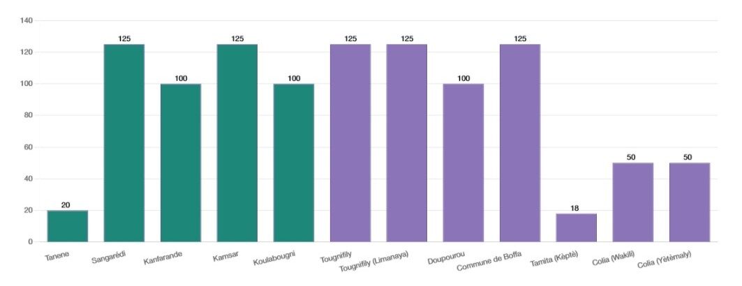 Toutes les régions de Boké et de Boffa ont convenu que les fonds étaient insuffisants pour atteindre les objectifs de leurs projets. Elles ont besoin d’engrais à un prix abordable et presque toutes ont exprimé leur intérêt pour l’achat d’équipement agricole.